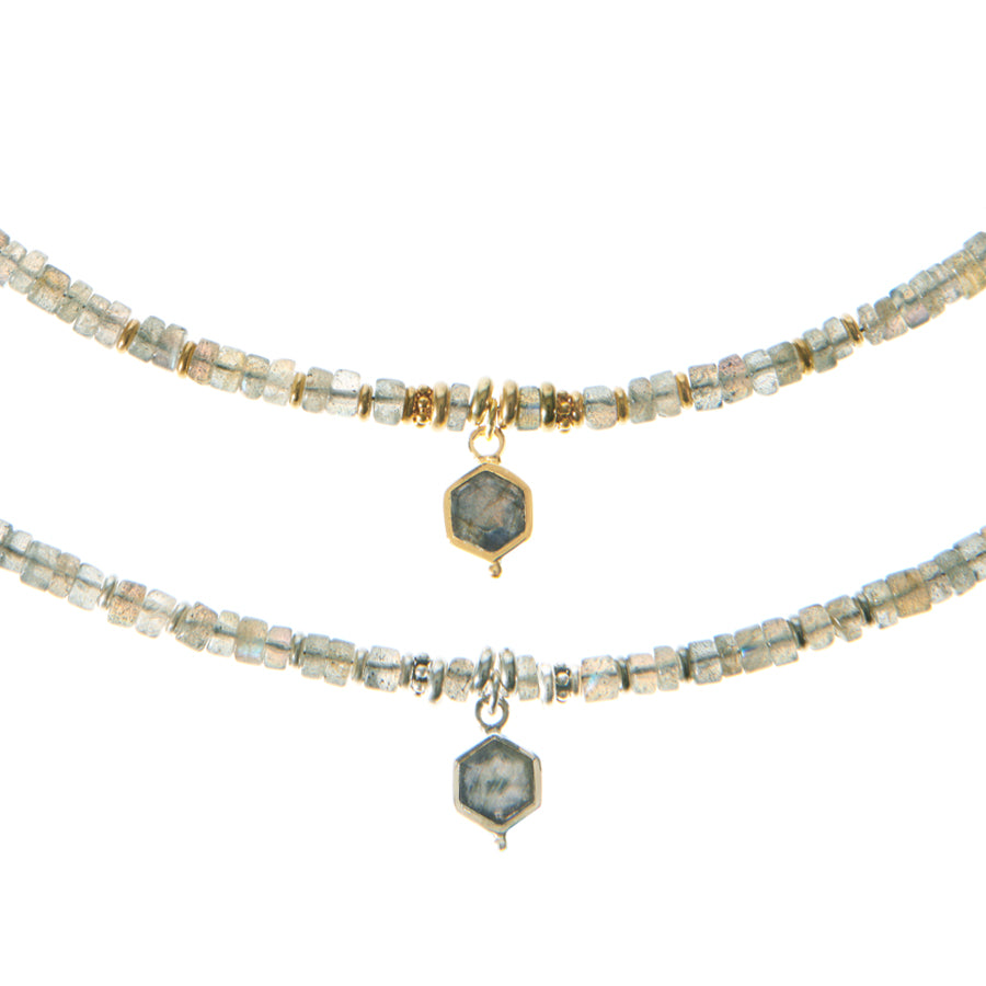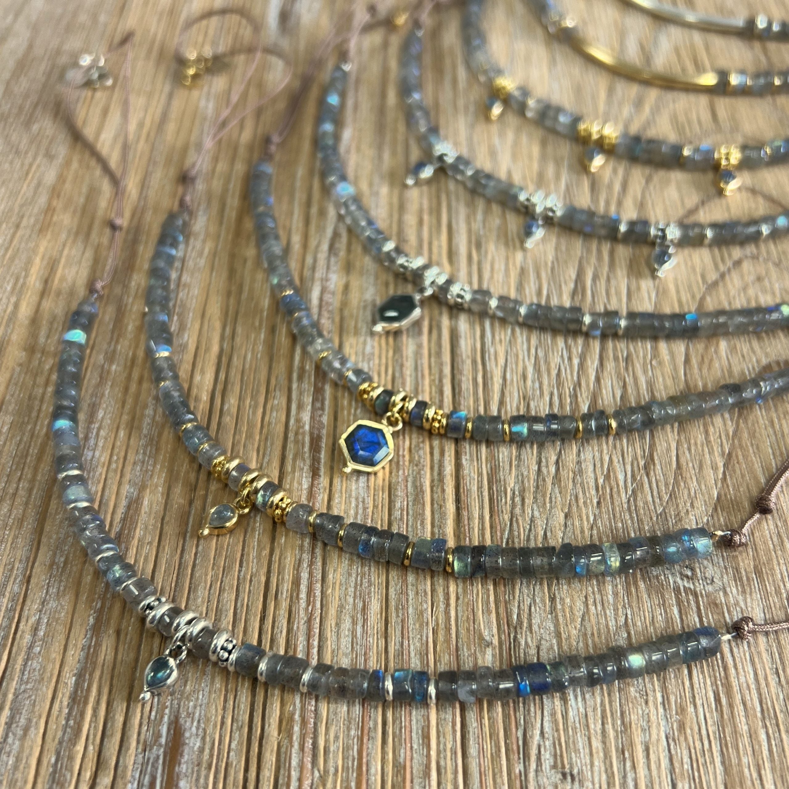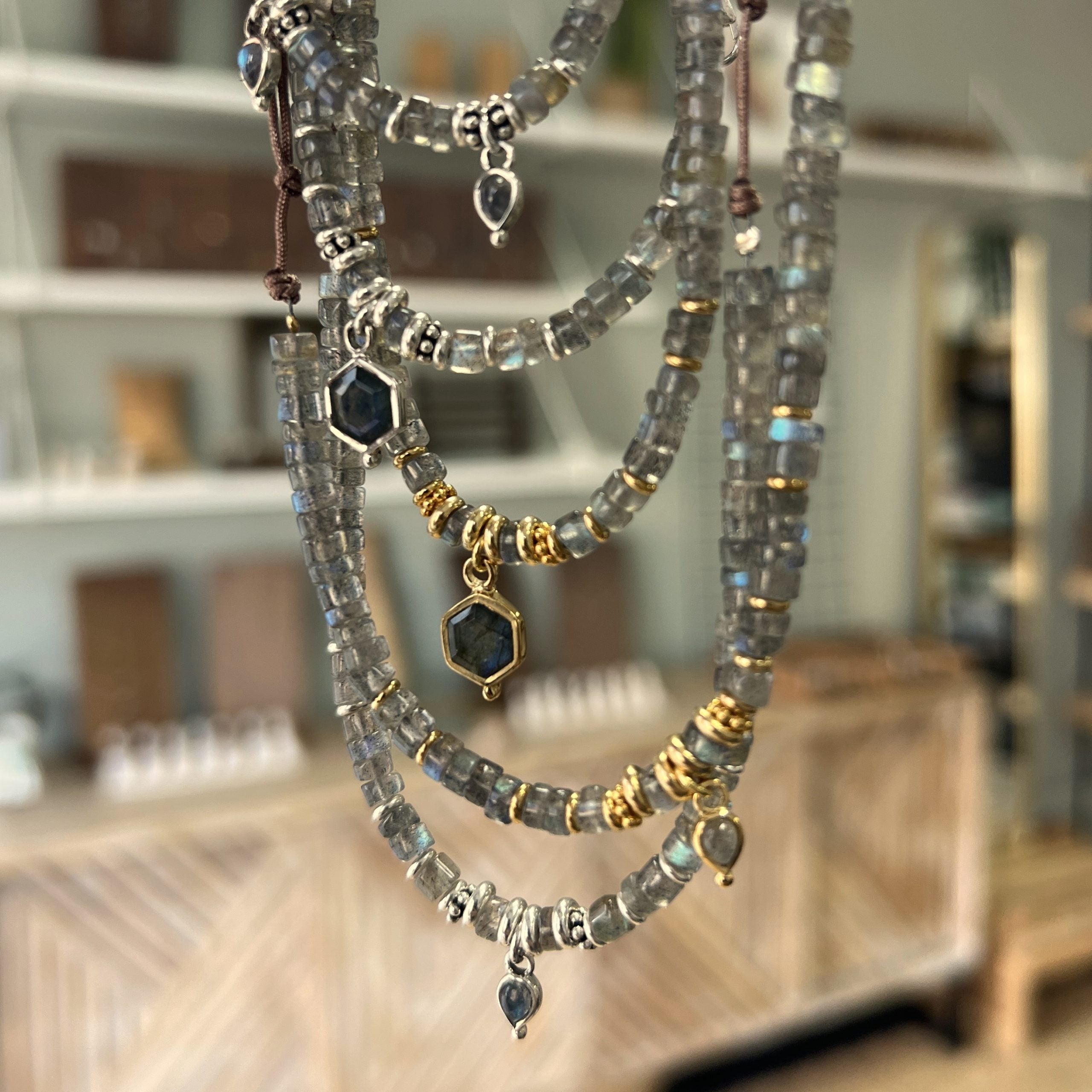 Hemos creado una colección que está cuidadosamente diseñada para reflejar la belleza y la magia de la labradorita, infundiendo a quien las lleva con fuerza y protección durante sus propios momentos de cambio.
