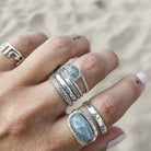 Anillo con piedra Aguamarina natural central de aproximadamente 6mm de alto trabajado en Plata de Ley.