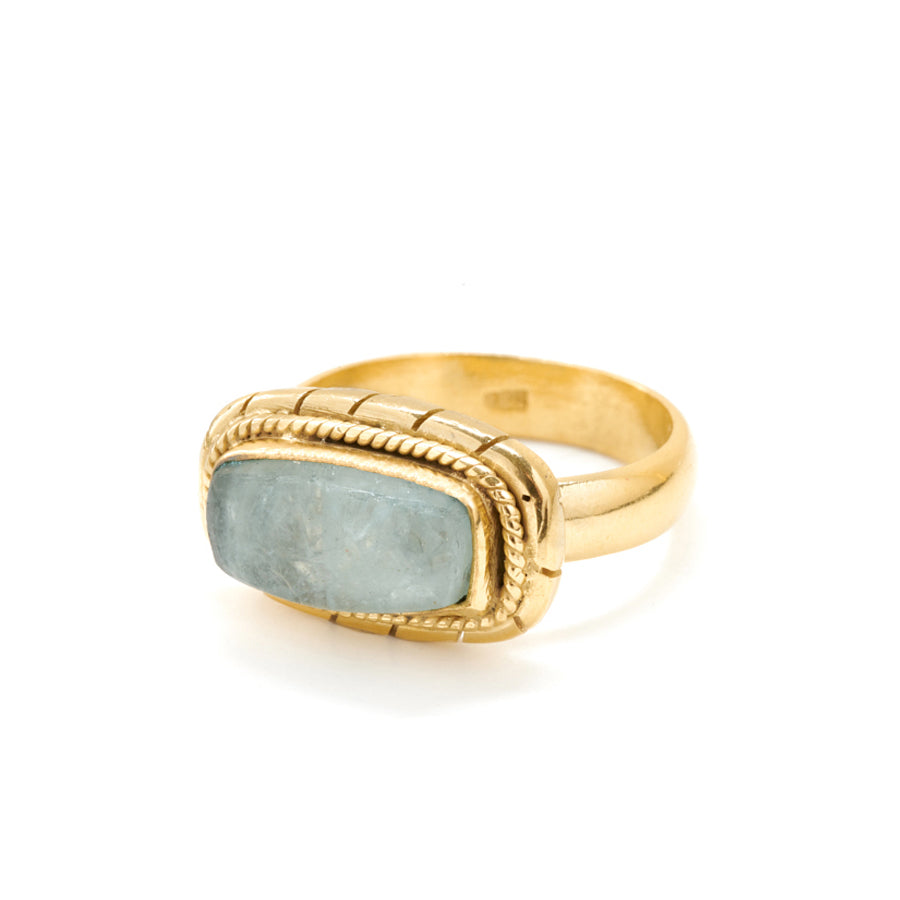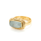 Anillo con Piedra Aguamarina natural central, CHAPADA EN ORO DE 18/24K con 3 MICRAS de espesor. Tallas 10 a 24.