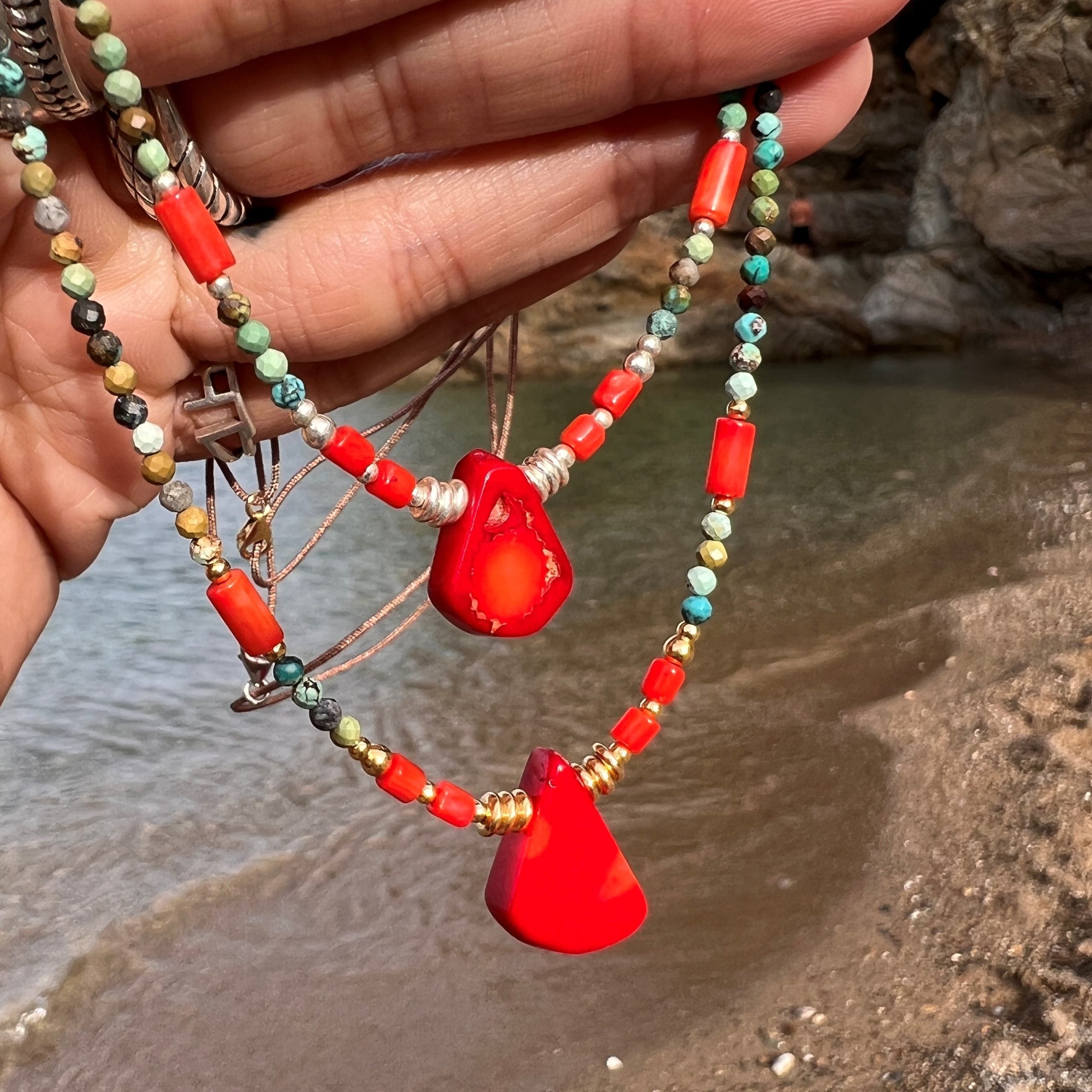 - Plata de Ley y piedras Turquesa natural y Coral Bambú.