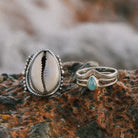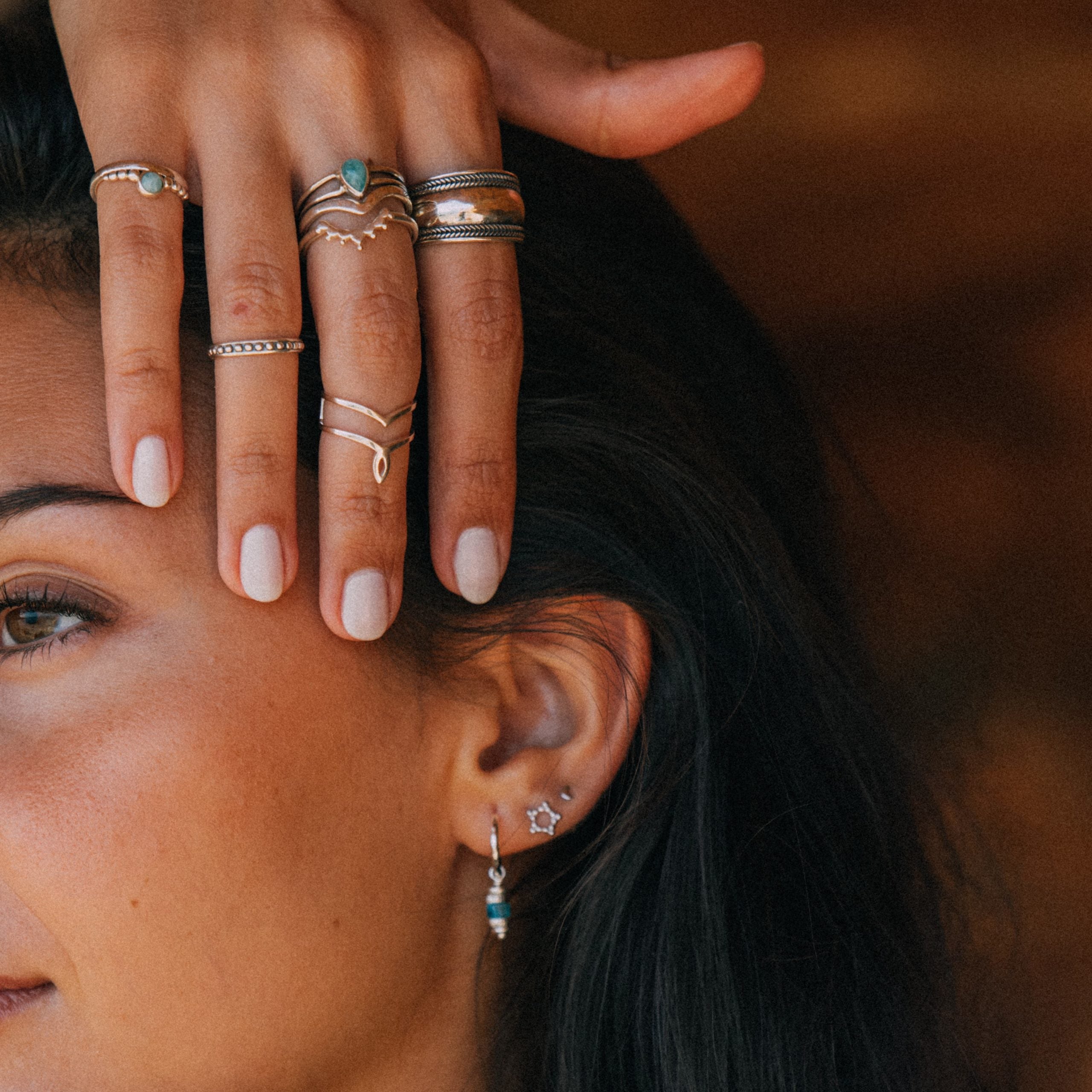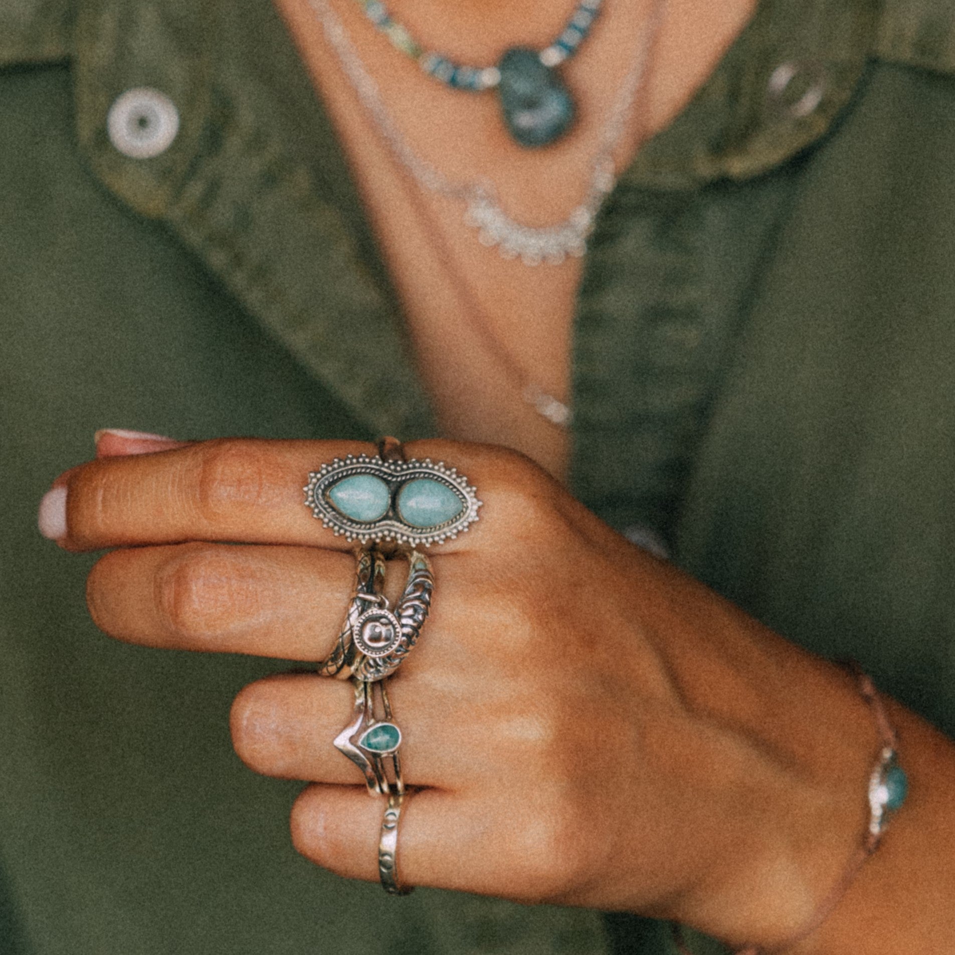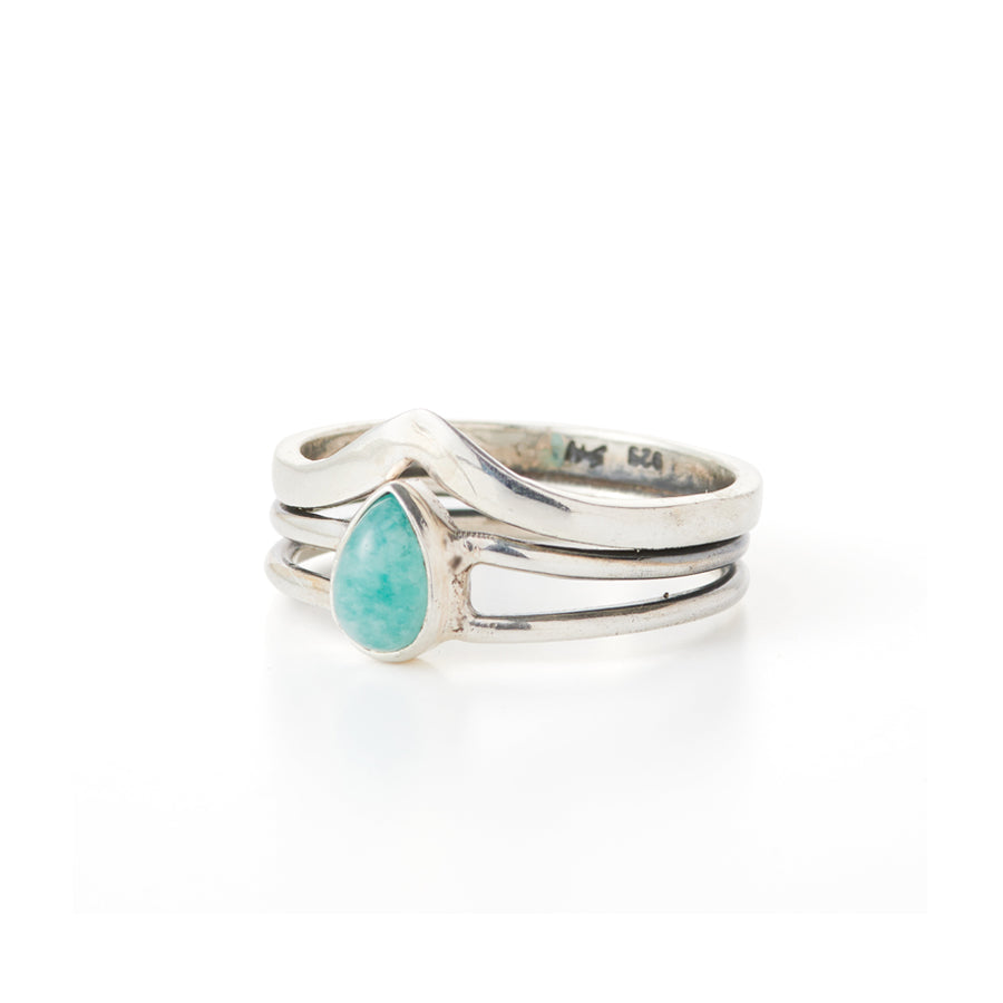 Anillo con piedra Amazonita natural central de aproximadamente 6mm de alto trabajado en Plata de Ley.