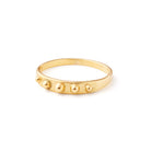 Anillo liso con cinco bolitas incrustadas. Material: Plata de ley CHAPADA EN ORO DE 18/24K con 3 MICRAS de espesor. Tallas 10 a 22.
