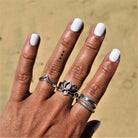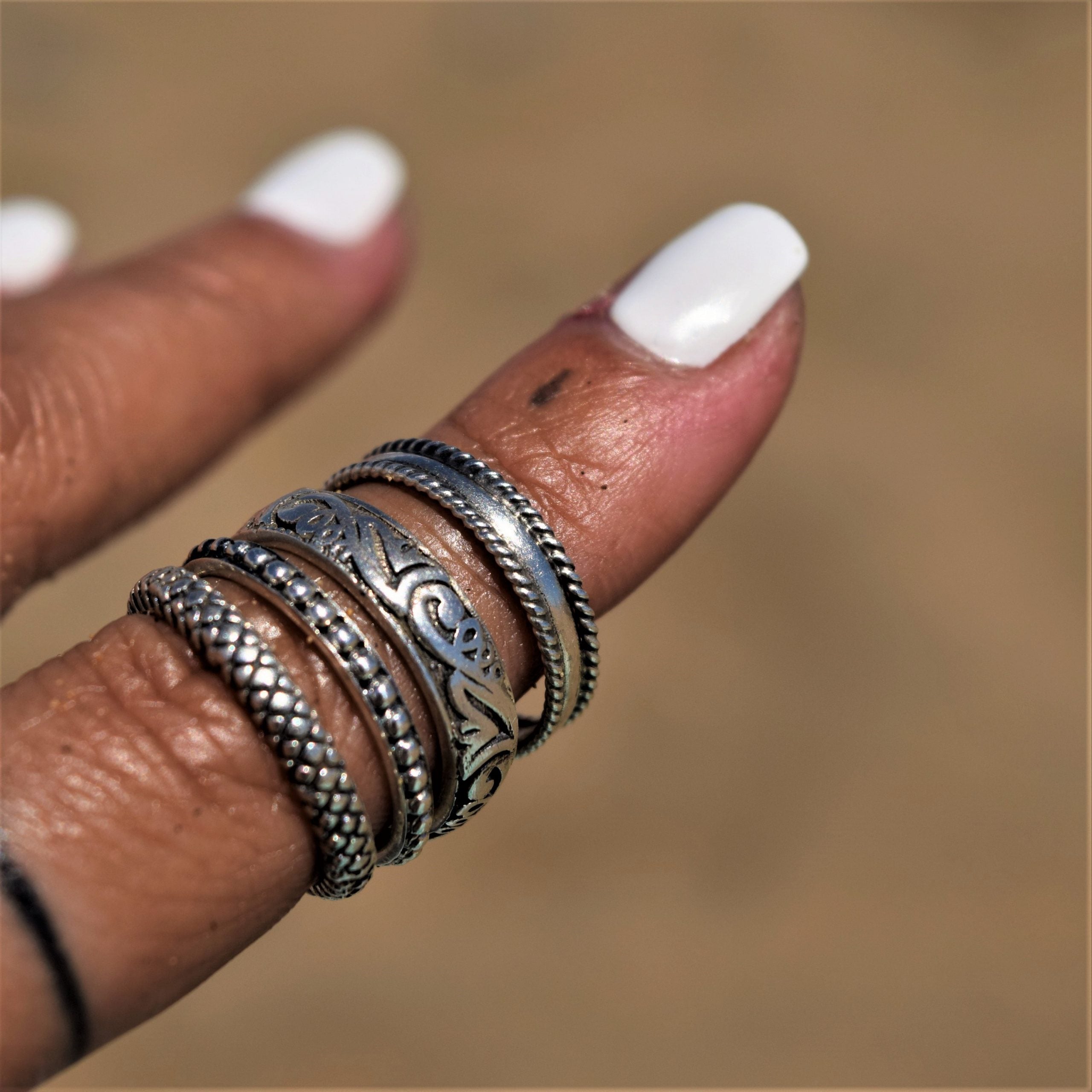Anillo en Plata de ley trabajada. Tallas 4 a 20. Tallas 4 y 6 para dedos del pie. Tallas 6 y 8 normalmente para dedo meñique o midi de cualquier dedo.