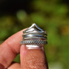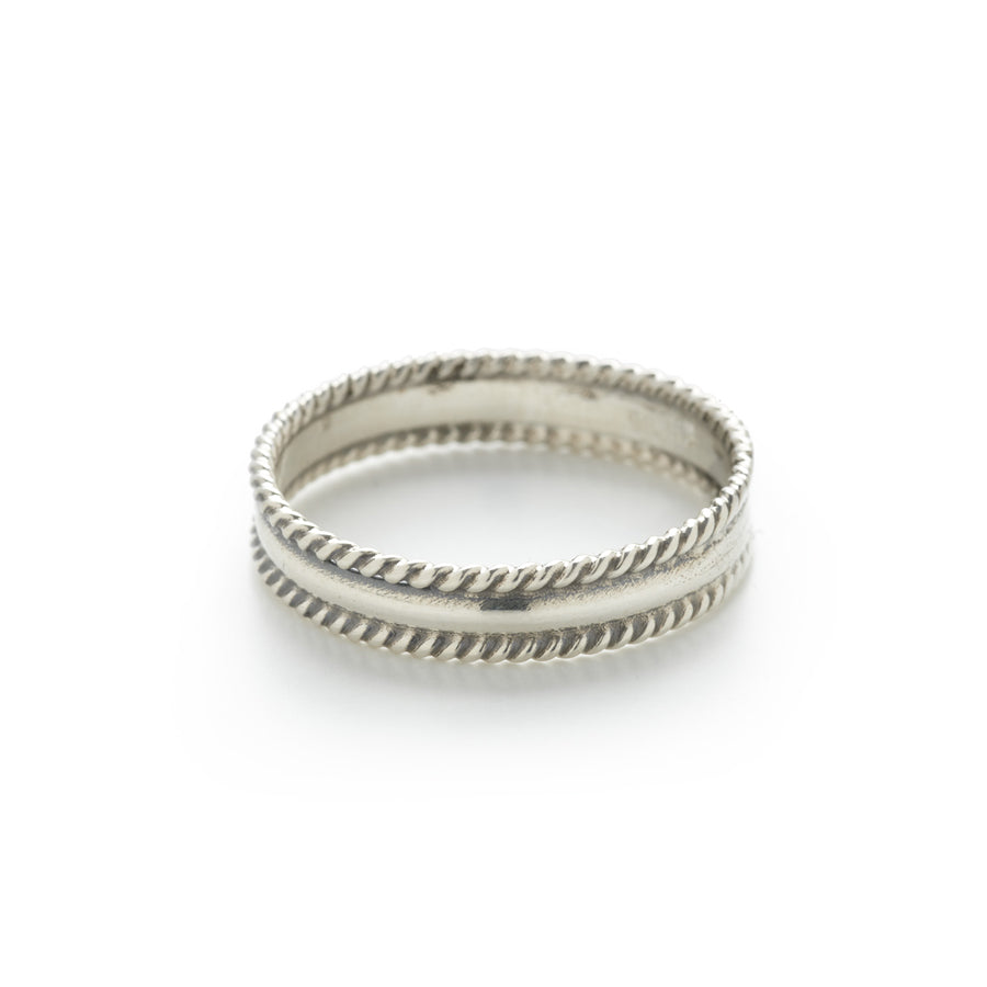 Anillo en Plata de ley trabajada. Tallas 4 a 20. Tallas 4 y 6 para dedos del pie. Tallas 4, 6 y 8 normalmente para dedo meñique o midi de cualquier dedo.