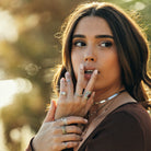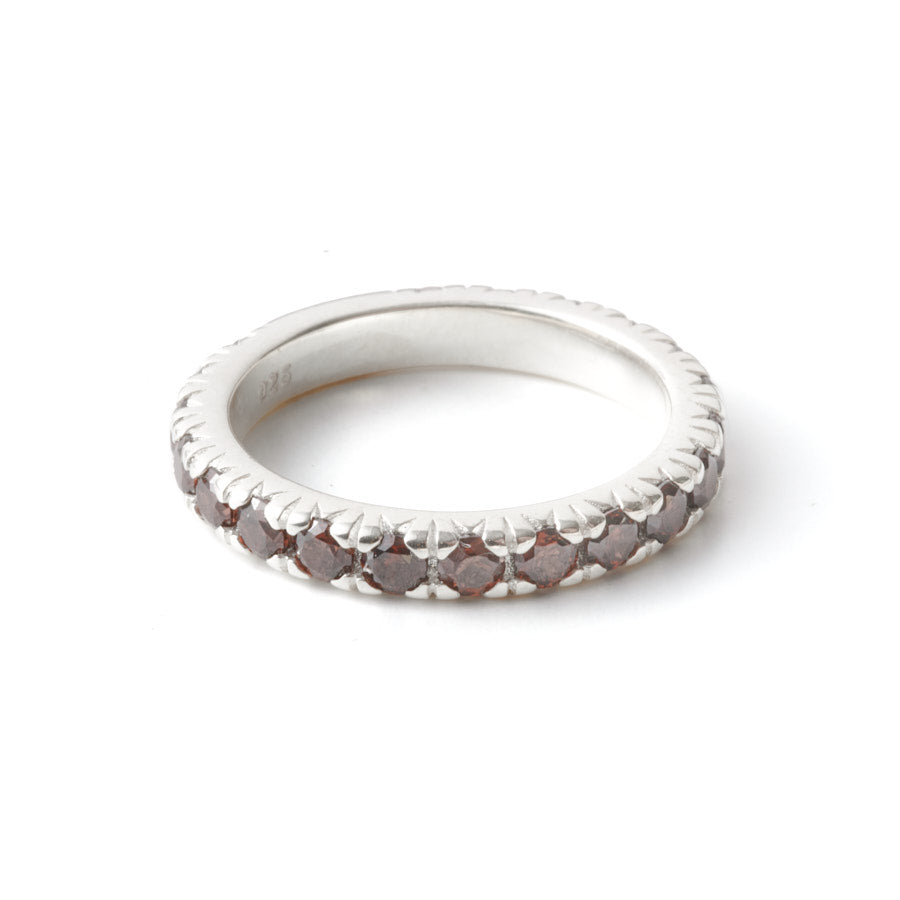 Anillo con Circonitas color café de aproximadamente 3mm de alto. Material: Plata de ley. Tallas 10 a 20.
