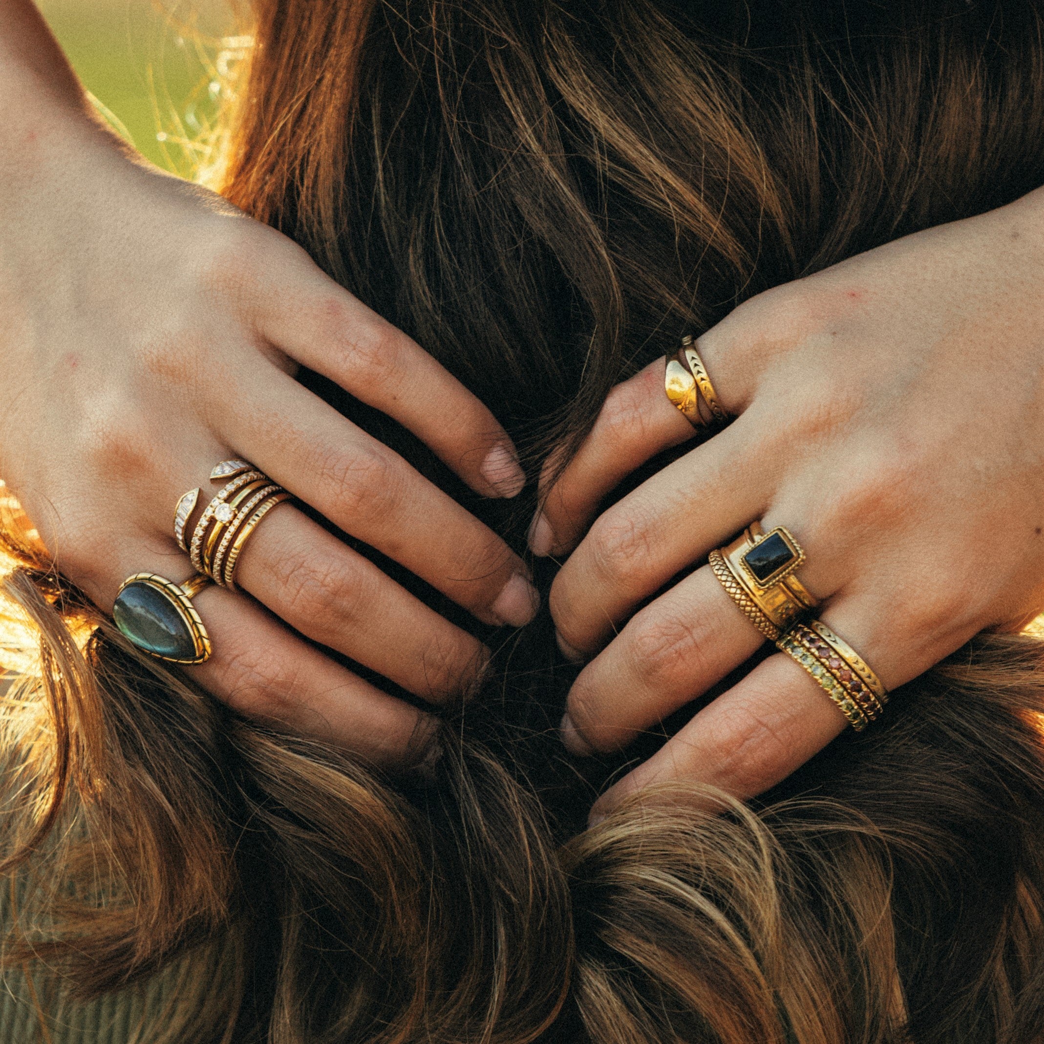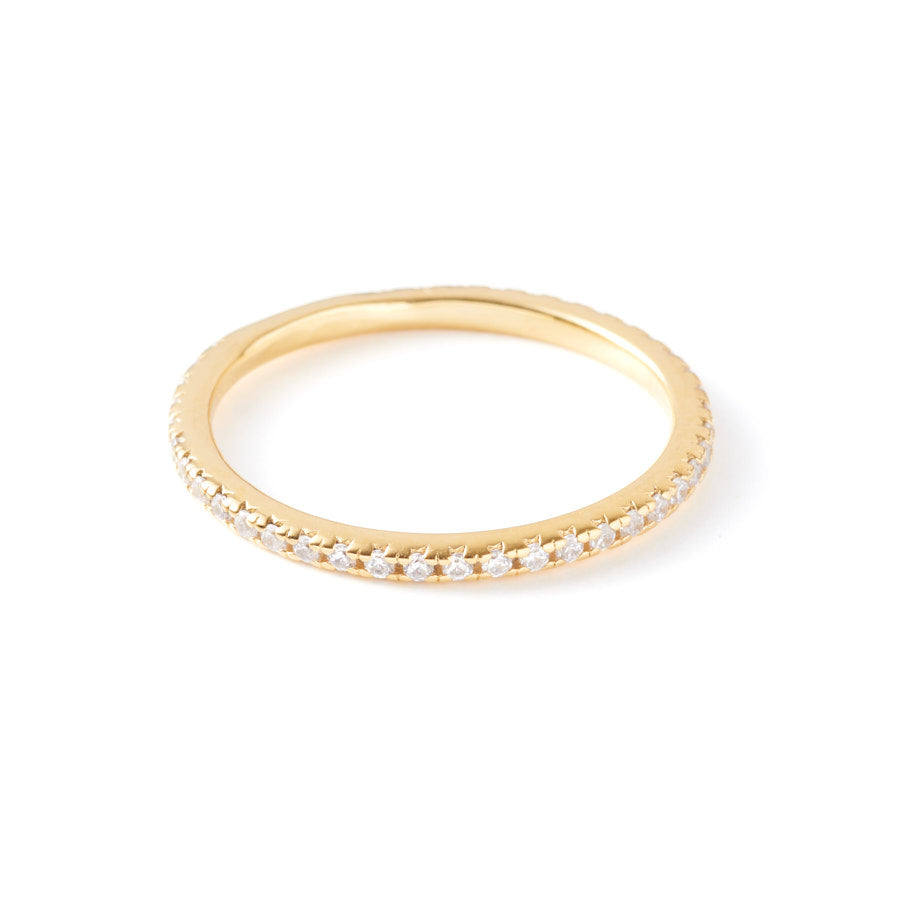 Anillo con Circonitas blancas engarzadas de aproximadamente 1,5mm de alto. Perfecto para combinar con anillos finitos de textura a modo de "capas".