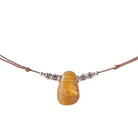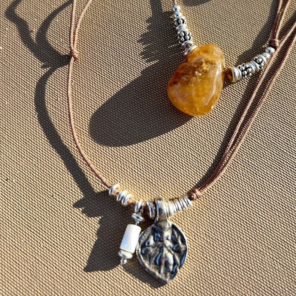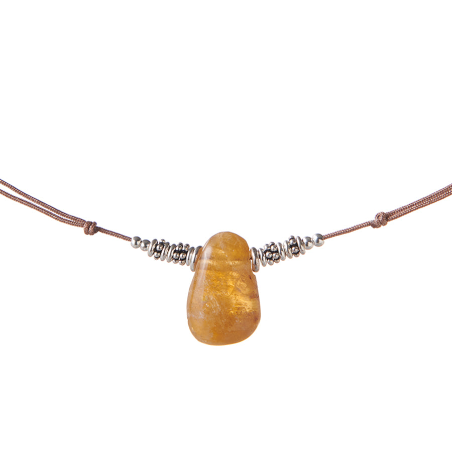 Collar de hilo ajustable hecho a mano con piedra Aragonito natural en forma de lágrima central y combinación de entre piezas en plata de ley.