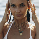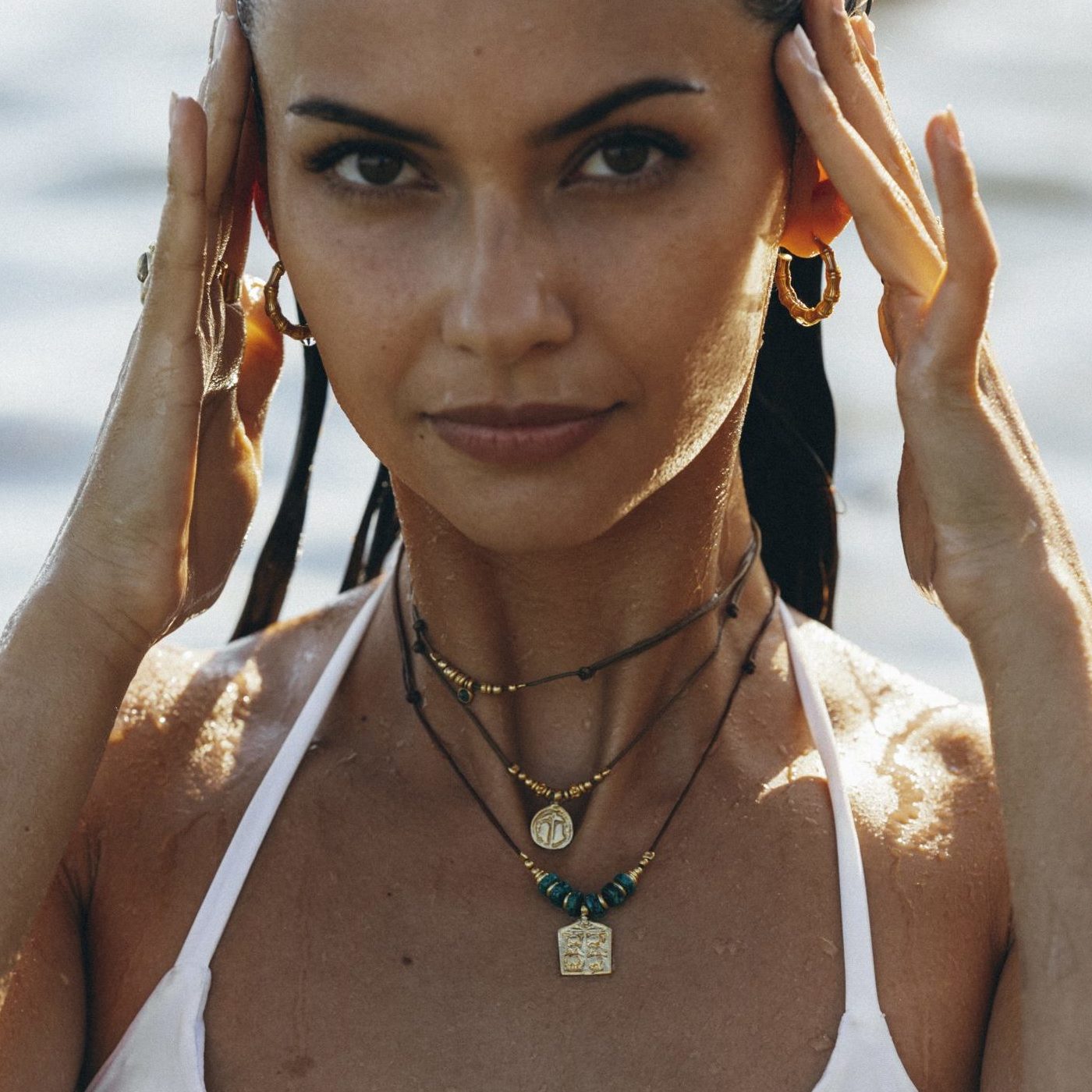 Material: Entre piezas y cierre en Plata de Ley chapada en oro de 18/24k con un espesor de 1 micra de oro / medalla central en Bronce chapado en oro de 18/24k con un espesor de 1 micra de oro.