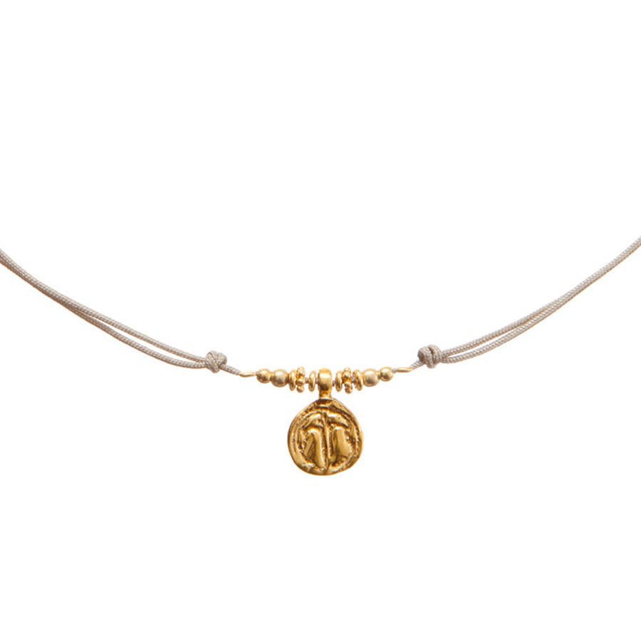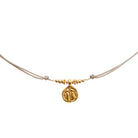 Collar de hilo ajustable hecho a mano con combinación de entre piezas en Plata de Ley y medalla central en bronce con chapado de oro.
