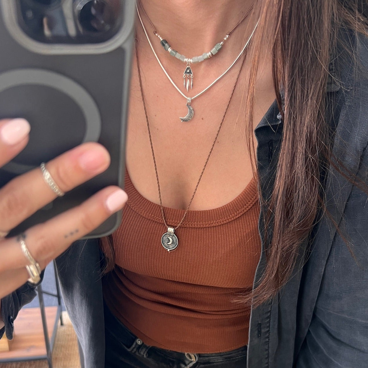 Largo ajustable, puedes llevarlo más o menos largo dependiendo con que joyas lo combines.