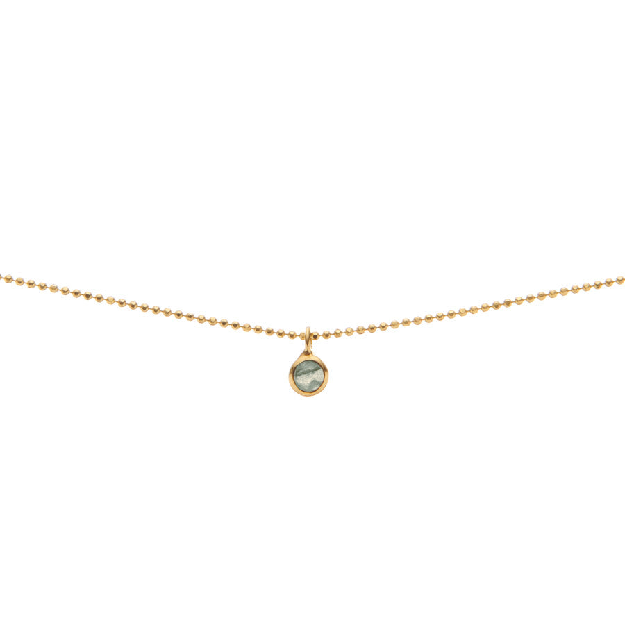 Choker elaborado con cadena diamantada y piedra Labradorita central de aproximadamente 4mm de diámetro.