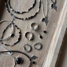 Material: Plata de Ley y piedras Turmalina negra, Jaspe Dálmata, Citrino y Espinela naturales.