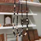 Largo ajustable, con terminación en hilo y nudo corredizo a lado y lado de la parte central de piedrecitas. Este tipo de collar puede llevarse cortito o largo dependiendo de con que otros collares lo combines!