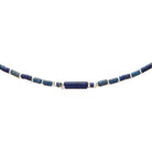 Gargantilla hecha a mano con piedra Lapizlázuli de distintos tamaños y tonalidades, con entre piezas en plata de ley y tubito central también en piedra Lapizlázuli natural.