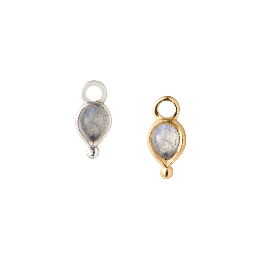 Charm para pendiente de Aro en forma de lágrima en plata de ley ó plata de ley chapada en oro de 18/24k y piedra labradorita, de aproximadamente 7 mm de altura.