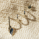 Charm para pendiente de Aro en forma redonda con una bolita en la parte inferior en plata de ley ó plata de ley chapada en oro de 18/24k y piedra labradorita, de aproximadamente 5 mm de altura.