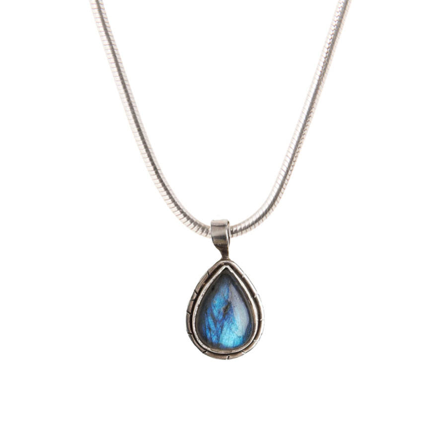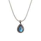 Cadena lisa tipo cola de ratón gruesa maciza y colgante en forma de lágrima con Piedra Labradorita Natural central de aproximadamente 16mm de alto.