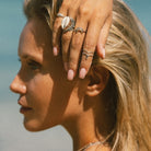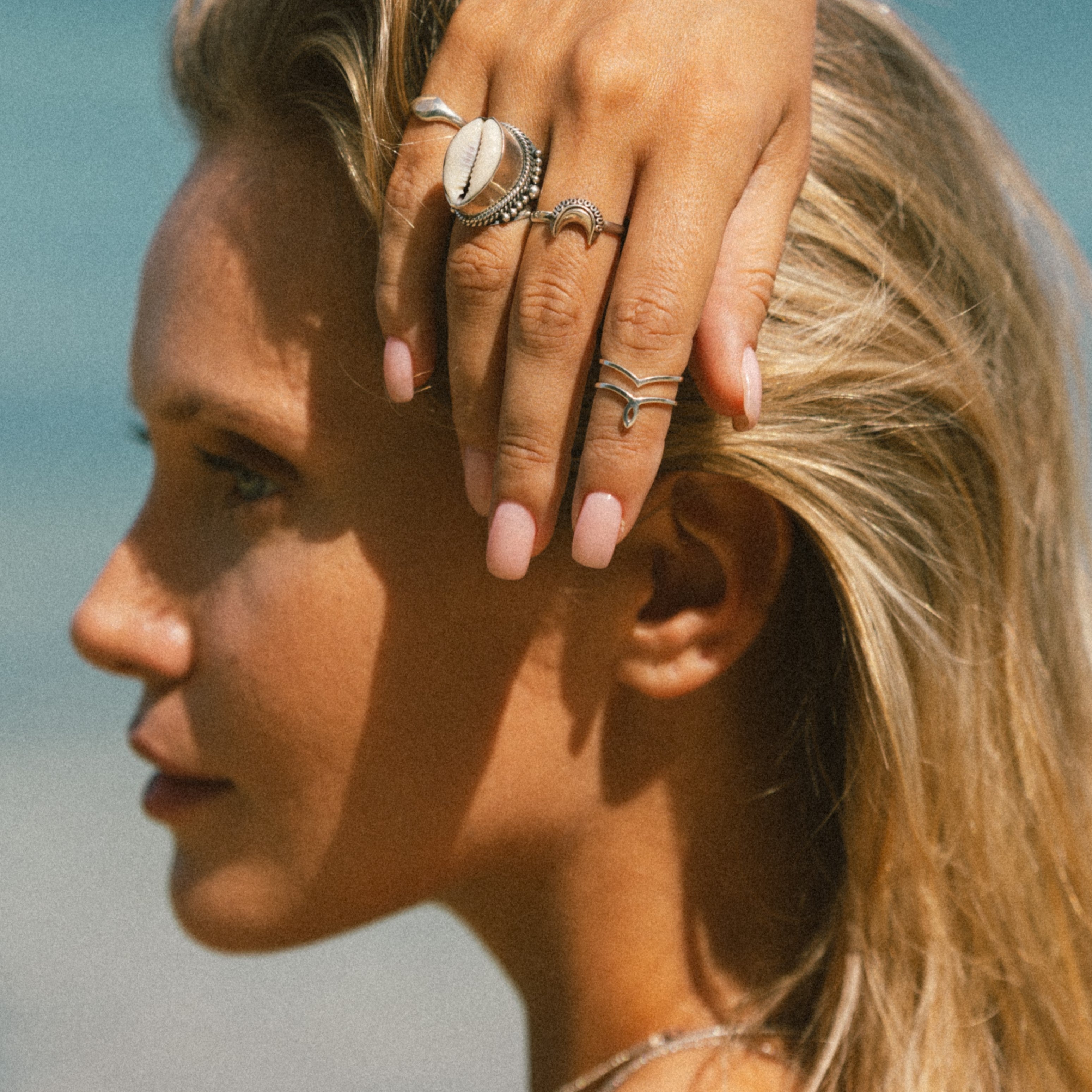 Anillo en forma de luna trabajada en Plata de Ley oxidada, patina oscura que se le da a la plata 925 para crear un efecto envejecido que de profundidad al dibujo.