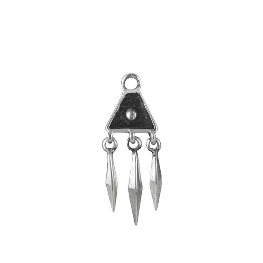 Charm para poner en pendiente tipo Aro trabajado en forma de Triangulo con tres lágrimas centrales colgando en su parte inferior de aproximadamente 10 mm de altura.