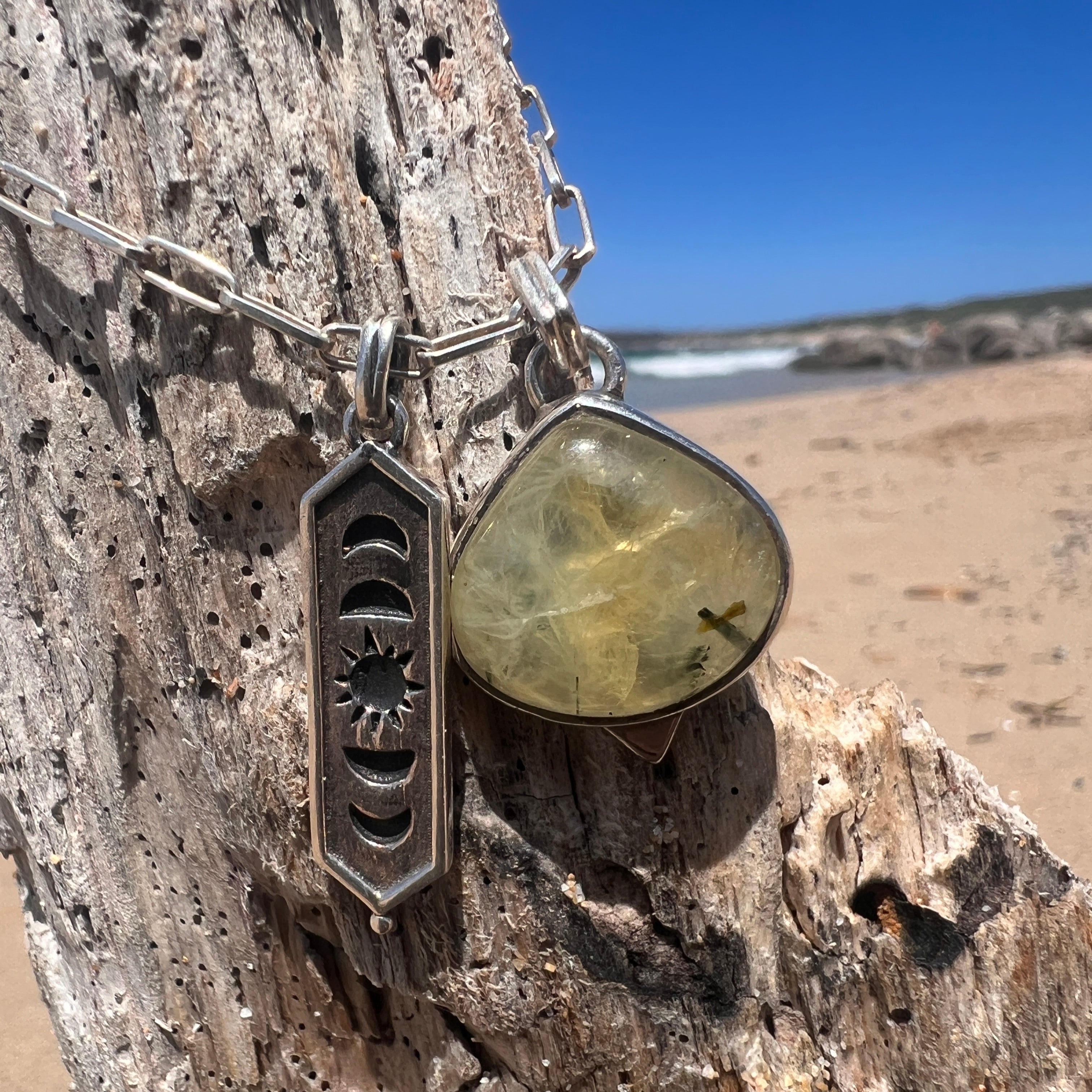 Material: Plata de Ley y piedra Prehnita natural.