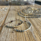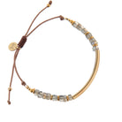 Largo de pulsera: Talla única (ajustable). Con terminación en hilo y nudo corredizo central.