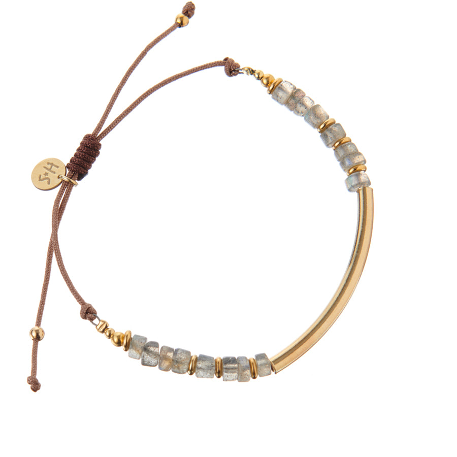 Material: Plata de Ley con baño de Oro de 18K y piedras labradorita naturales. *Esta piedra puede variar un poco su veteado, tonalidad, forma y medida en función del corte de piedra usado para cada unidad de pulsera.