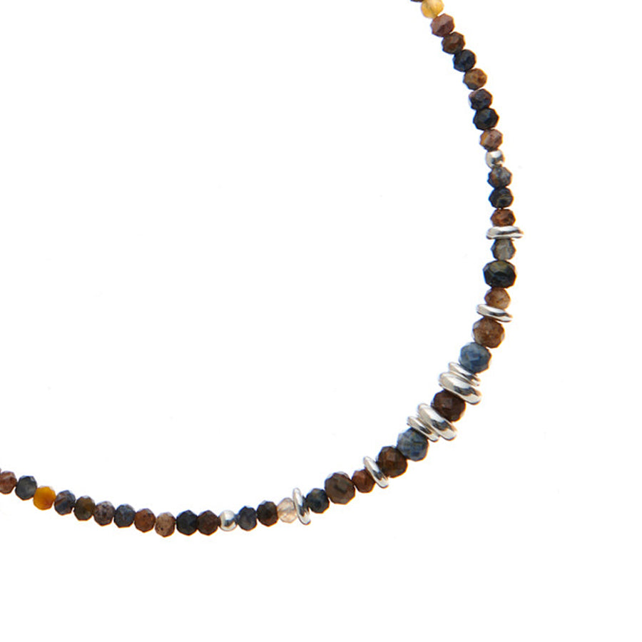 Pulsera hecha a mano con piedrecitas Pietersita natural de distintos tamaños y entre piezas en plata de ley.