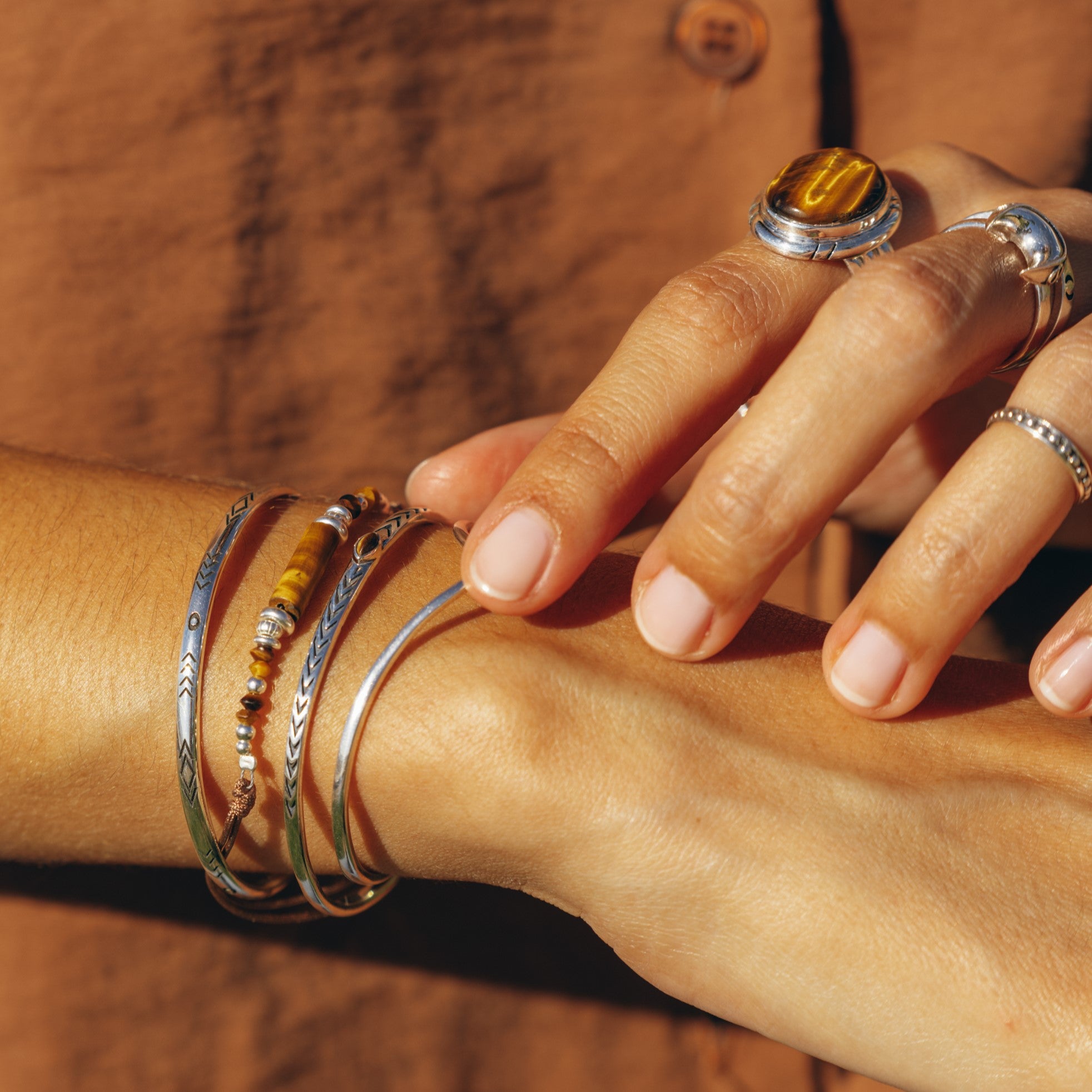 Material: Plata de Ley y piedra ojo de tigre natural.
