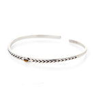 Pulsera rígida con piedra Ojo de tigre natural central en forma de ojo de aproximadamente 2 x 4 cm trabajada en Plata de Ley oxidada, pátina oscura que se le da a la plata 925 para crear un efecto envejecido que de profundidad al dibujo.