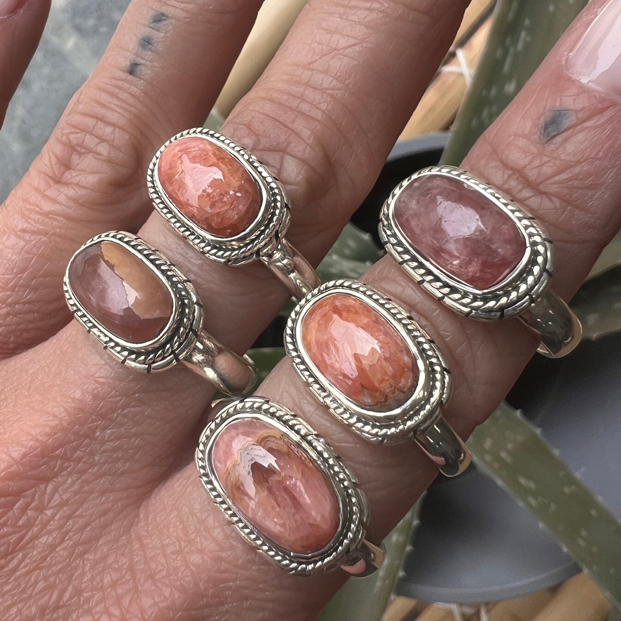 Material: Plata de Ley y piedra Rodocrosita natural.