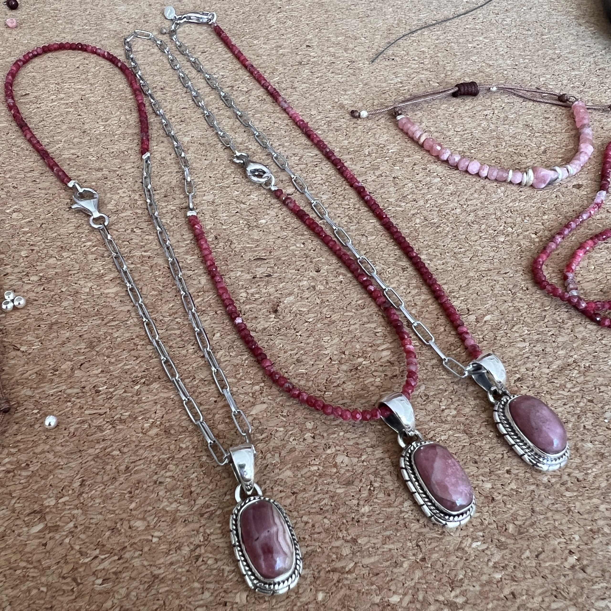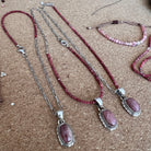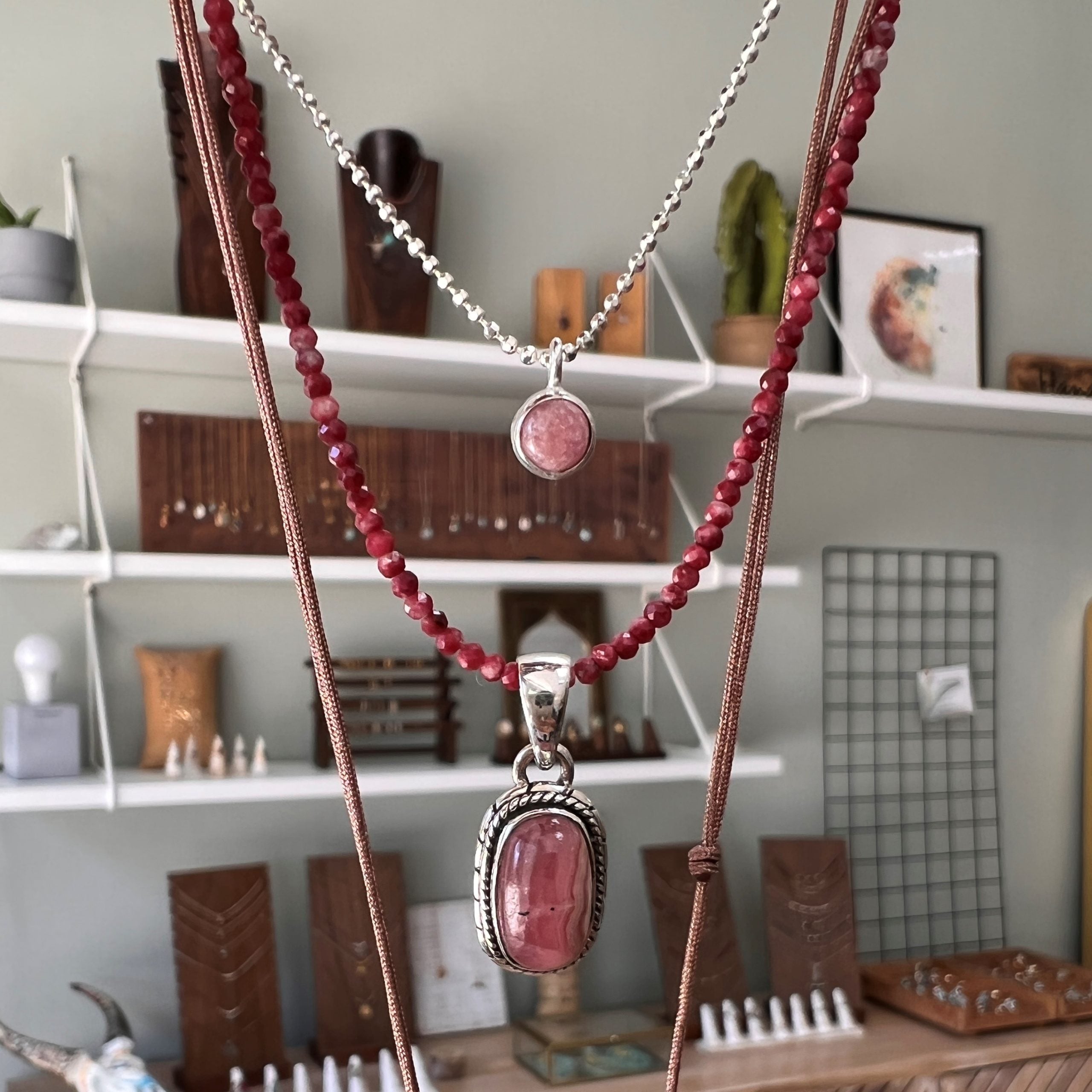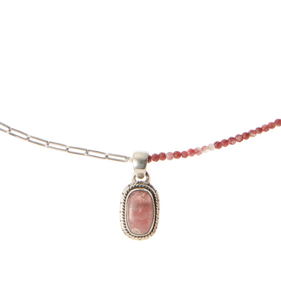 Gargantilla hecha a mano que combina mitad de collar con piedras Tulita naturales, y la otra mitad con cadena de eslabones en Plata de Ley. La gargantilla incluye un colgante elaborado en piedra Rodocrosita natural trabajada en Plata de Ley 925 con acabado oxidado (pátina oscura que se le da a la plata para crear un efecto envejecido que de profundidad al dibujo). El colgante se puede quitar o poner dependiendo de la ocasión, así como moverse a la parte de cadena, a la de piedras, o bien en medio de las dos mitades. Así conseguimos un collar que puede adaptarse perfecto a cualquier look! Largo de collar: 33 cm (no ajustable) o 33-38 cm (alargo 5 cm). Material: Plata de Ley y piedras Pietersita y Granate natural.