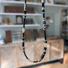 Gargantilla entera de piedrecitas hecha a mano y diseñada con combinación de piedras Turmalina negra, Jaspe Dálmata, Citrino, Espinela y entre piezas en Plata de ley.