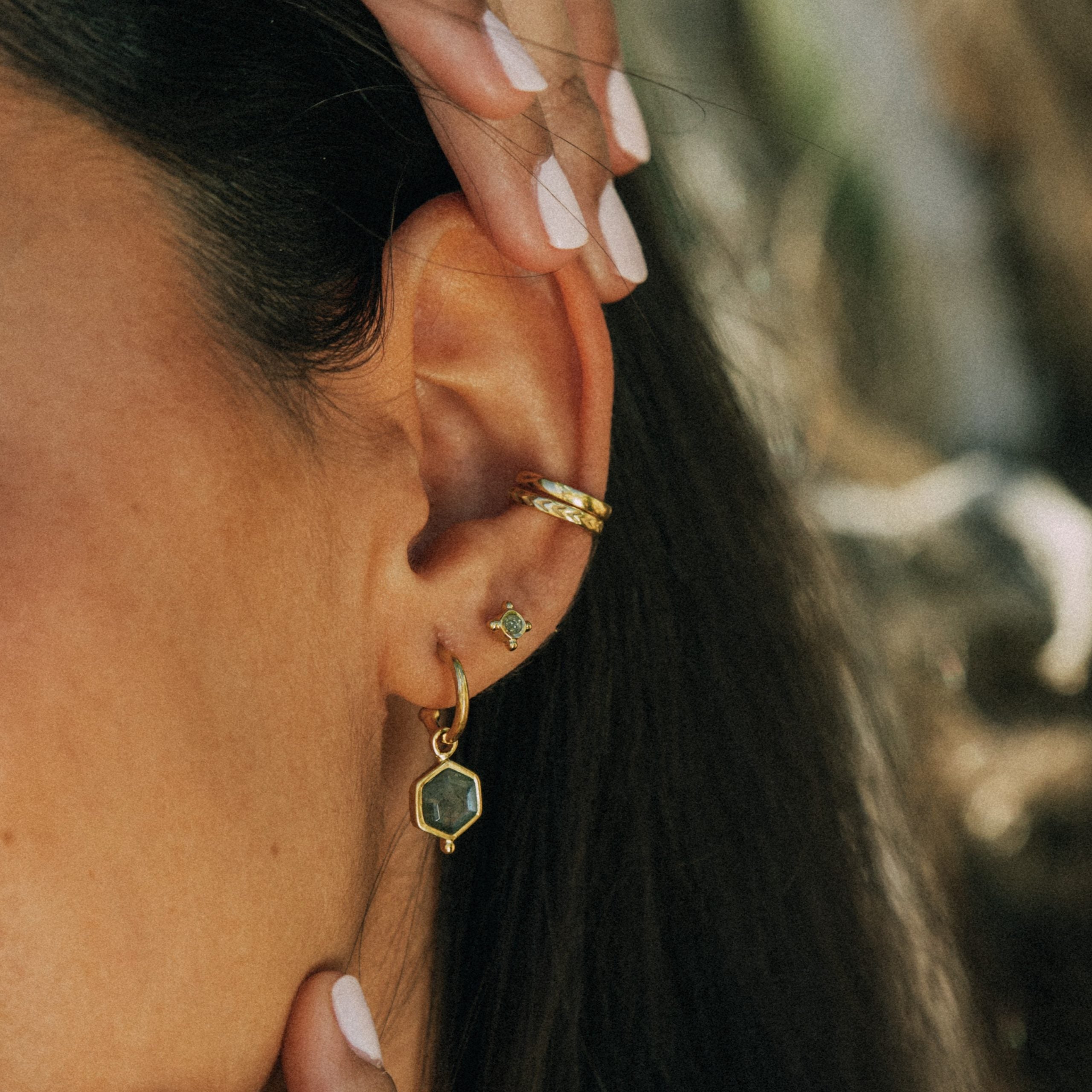 Ethnic textured fake cartilage earring in sterling silver or 18/24k gold plated sterling silver. Earring size: approximately 1.8mm thick and 10mm inner diameter.