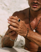 El ónix es conocido por ser una piedra de protección y fortaleza. Nuestro anillo Black Signet con un diseño sobrio y elegante hecho en plata de ley 925 y piedra ónix negra es perfecto para tu día a día. Una pieza grande y masculina, con acabado rústico hecho a mano, hace que sea la elección perfecta para combinar con cualquier look.