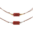 Collar de hilo ajustable hecho a mano con combinación de entre piezas en Plata de Ley y pieza central en Coral Manzana.