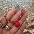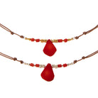 Collar de hilo ajustable hecho a mano con combinación de entre piezas en Plata de Ley, y cuentas y lágrima central en Coral Bambú.